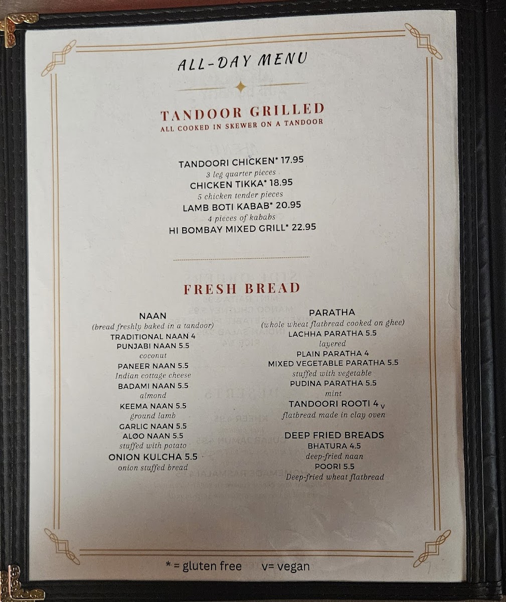 Three leg quarters marinated in yogurt and freshly ground Indian spices roasted in tandoor over slow fire. Served on a bed of chicken of lettuce, garnished with cilantro.