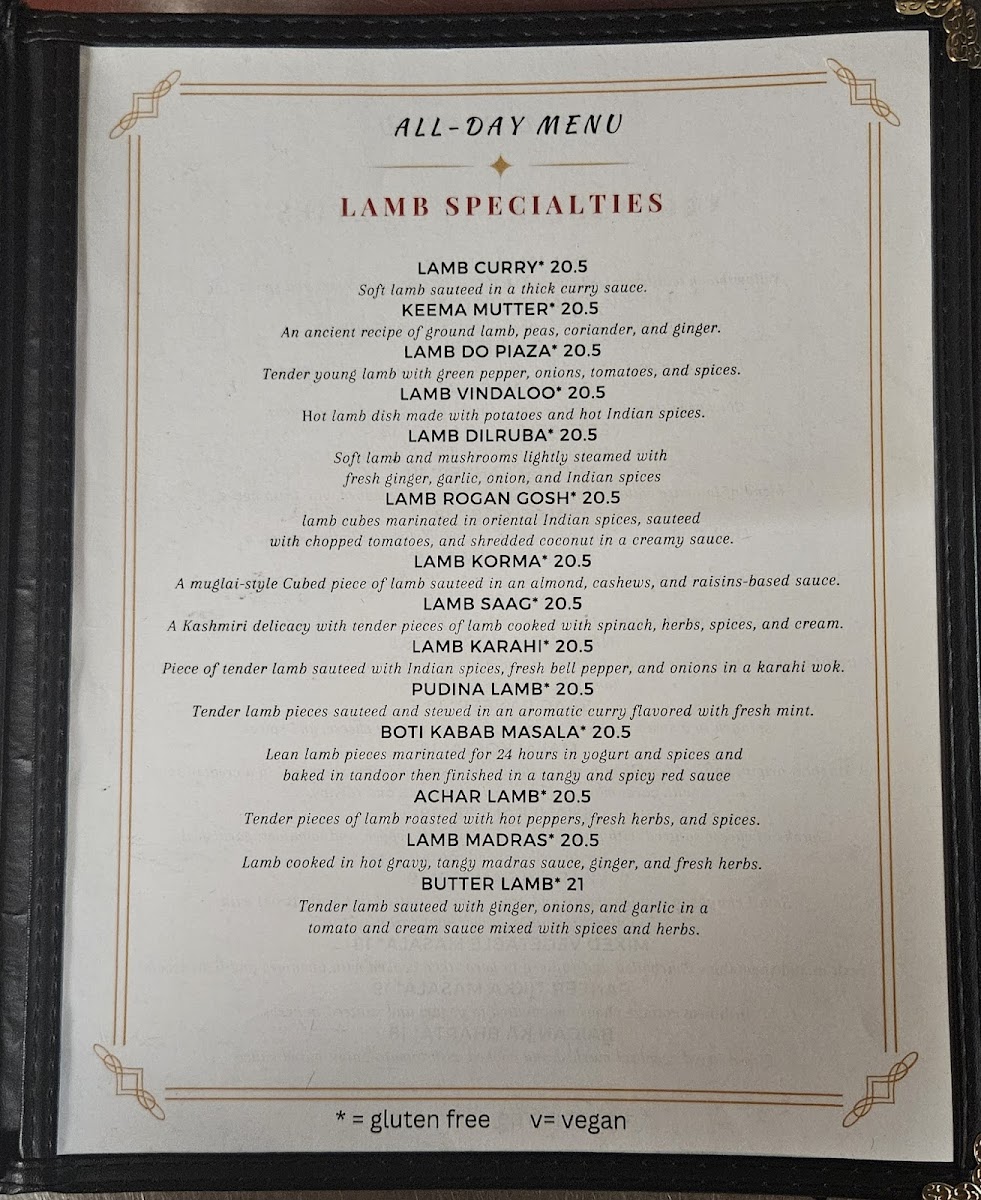 Cubed pieces of lamb sautéed in special mild sauce with almonds, cashews, and raisins. A mughlai delight!